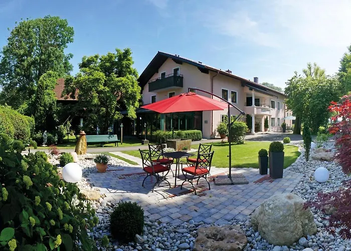 L'hotel Landhaus Riedl Bad Füssing offre 12 chambres à environ 10 minutes en voiture de Falknerei Burg Obernberg. L'hotel a un Wi-Fi dans tout l'établissement.
